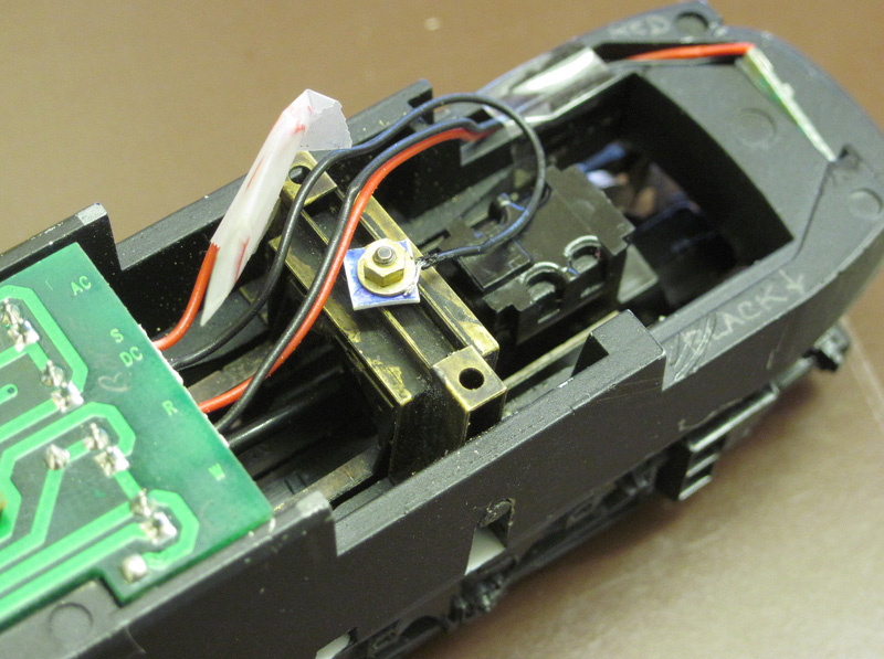 Secure fit to locomotive chassis block, using an etched brass pivot frame.